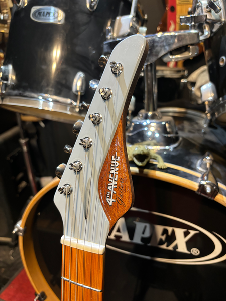 A 25.5" scale, bolt on neck is paired with a solid Obeche body, equipped with a T-style layout and finished in a variety of vintage Volkswagen colours and nitrocellulose lacquer.